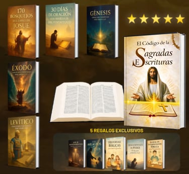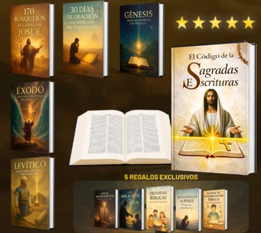 Al adquirir CÓDIGO DIVINO DE LAS SAGRADAS ESCRITURAS hoy, recibirás totalmente GRATIS estos 5 regalos exclusivos que complementarán tu estudio y crecimiento espiritual: